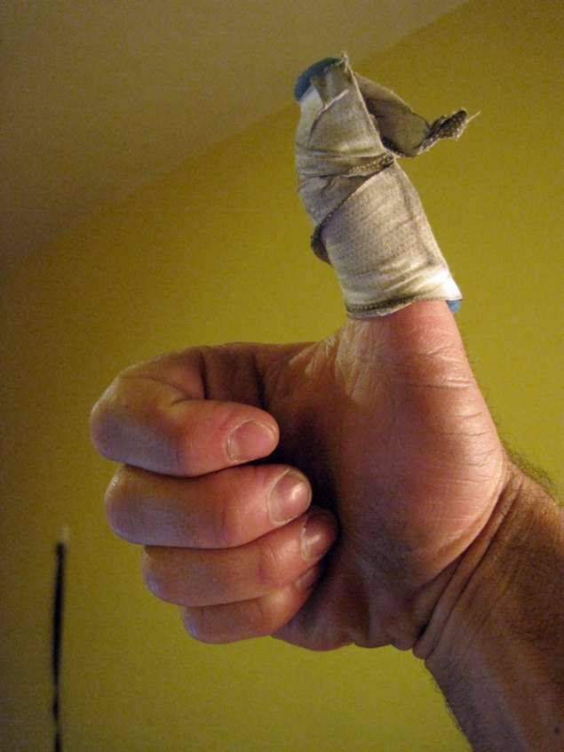 just jammed it really badly, I took a quick sub, taped it up nice and